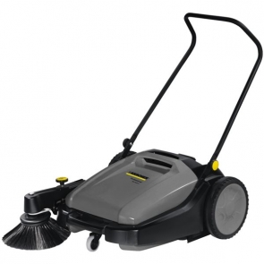 Utilisation en extérieur et en intérieur. Filtre à poussières fines. Entraînement du balayage manuel. Balai principal réglable. Timon rabattable. Rendement surfacique : 2800 m²/h Largeur de travail : 480 mm Largeur de travail avec un balai latéral : 700 mm Cuve à déchets : 20 l Poids : 23 kg Dimensions : 1300 x 850 x 1050 mm