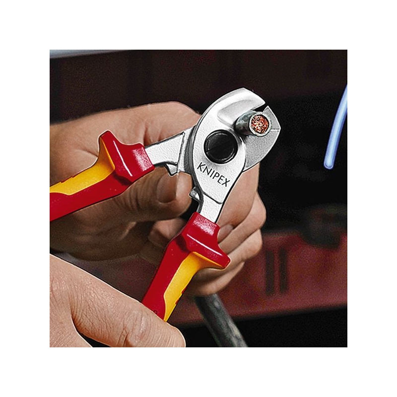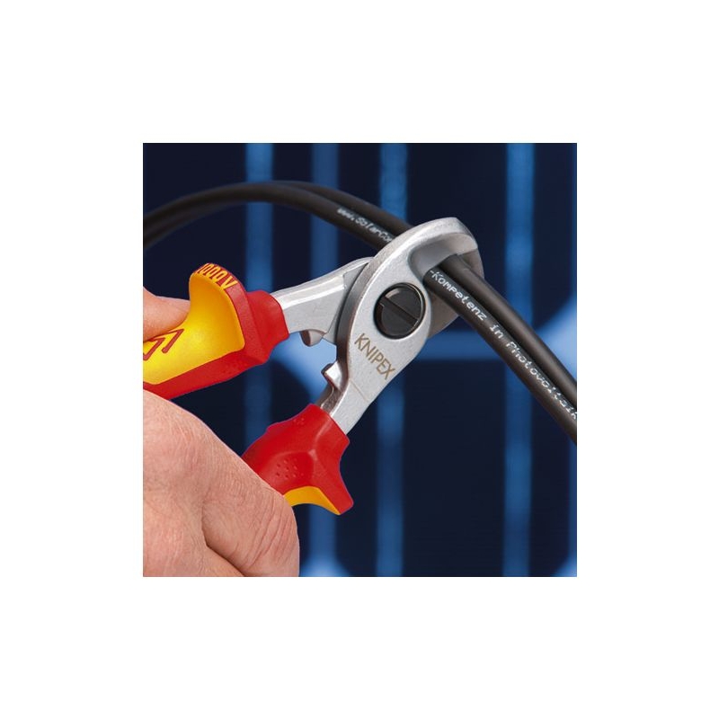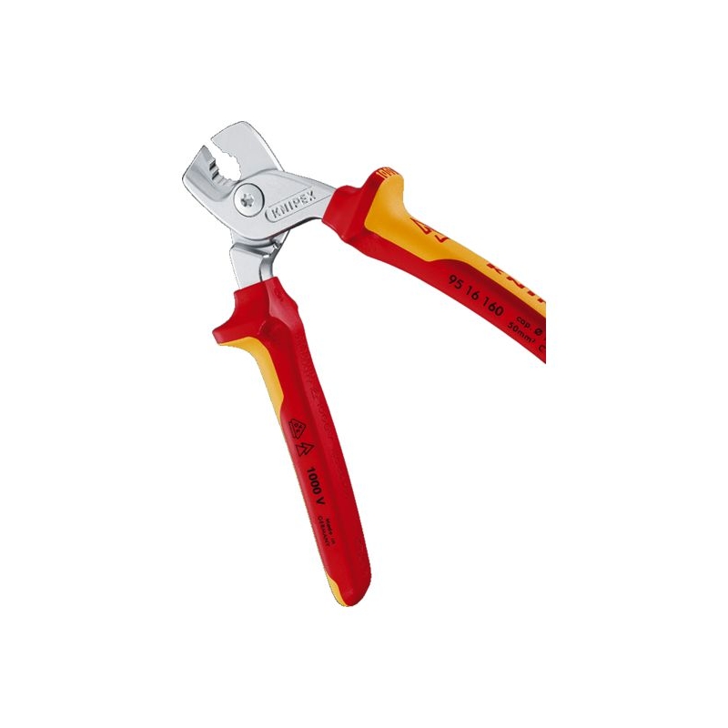 Coupe sans écrasement par étape en séparant les fils pour économiser de l'énergie. Tranchants trempés par induction. Protection anti-pincement. Poignées gainées bi-matière isolées 1000 V. Capacité de coupe : Ø 15 mm Longueur : 160 mm Norme : EN 60900