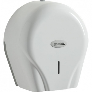 En ABS blanc pour rouleaux de papier hygiénique 200 et 400 m. Façade ouvrante avec serrure à clé, large fenêtre de contrôle du niveau de consommable. Déroulement du papier freiné par la forme du mandrin plastique. Bords ciselés pour une découpe facile du papier. Fixation murale.