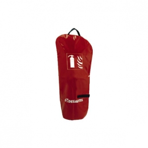 En tissu polyester enduit PVC rouge, traité anti-UV, classé au feu M1. Fermeture par velcro. Pour extincteurs poudre 6/9 kg et eau 6/9 l.