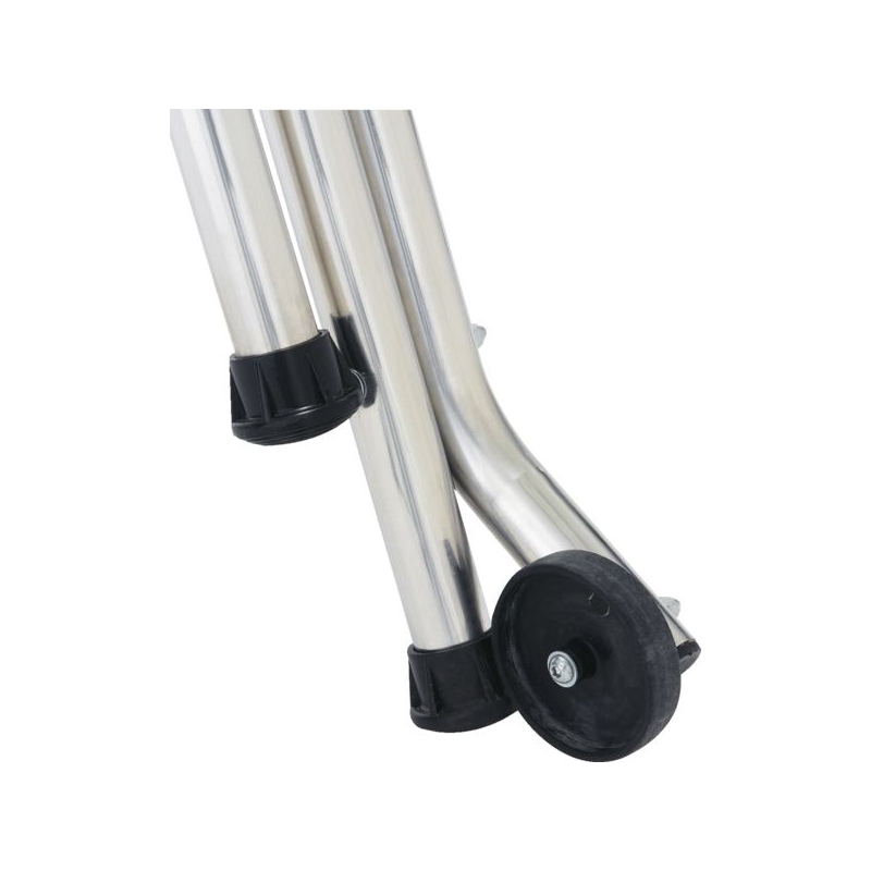 Utilisation sur sol plat. Usage intensif. En aluminium. Garde-corps fixe 360° avec portillon semi-automatique rigide. Plate-forme 400 x 490 mm avec plinthes intégrées. Marches striées antidérapantes de 60 mm. Tablette porte-outils. 2 roulettes Ø 100 mm pour les déplacements. Béquille arrière adaptée pour le passage des WC (sauf modèle 2 marches). Modèles 4 et 5 marches avec stabilisateurs. Charge maxi. : 150 kg Norme : PIRL NFP 93353 - Décret 2004.924