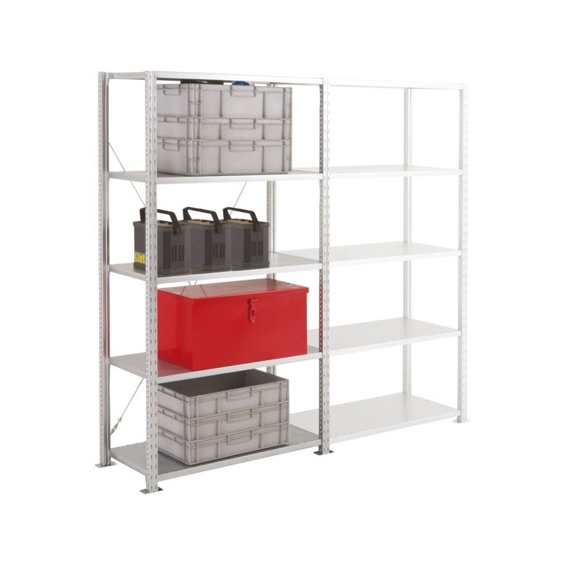 Solution galvanisé à tablettes tôlées. Hauteurs de poteaux jusqu'à 7,5m et 24 dimensions de tablettes. Conçu pour supporter les charges standards ou lourdes grâce au renfort qui permettent un chargement jusqu'à 360 kg par niveau. Finition galvanisé qui s'adapte à tous les environnements (industriel, réserve de magasin, logistique ,etc.) Poteaux et tablettes Galva Dim : 2000 x 1000 mm