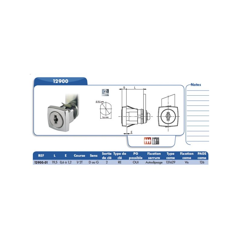 Rotation ½ tour -droite ou gauche. 2 sorties de clé. Varié. Fixation par autoclipsage. Livrée avec came 15929-25, avec 1 vis et circlips de fixation + 2 clés.